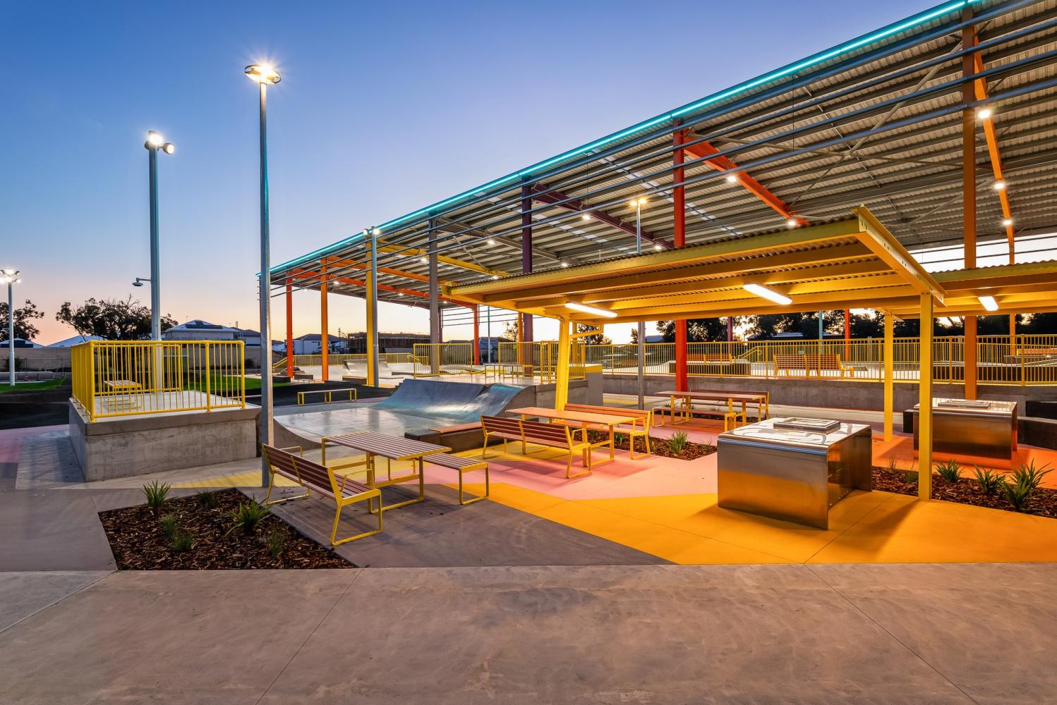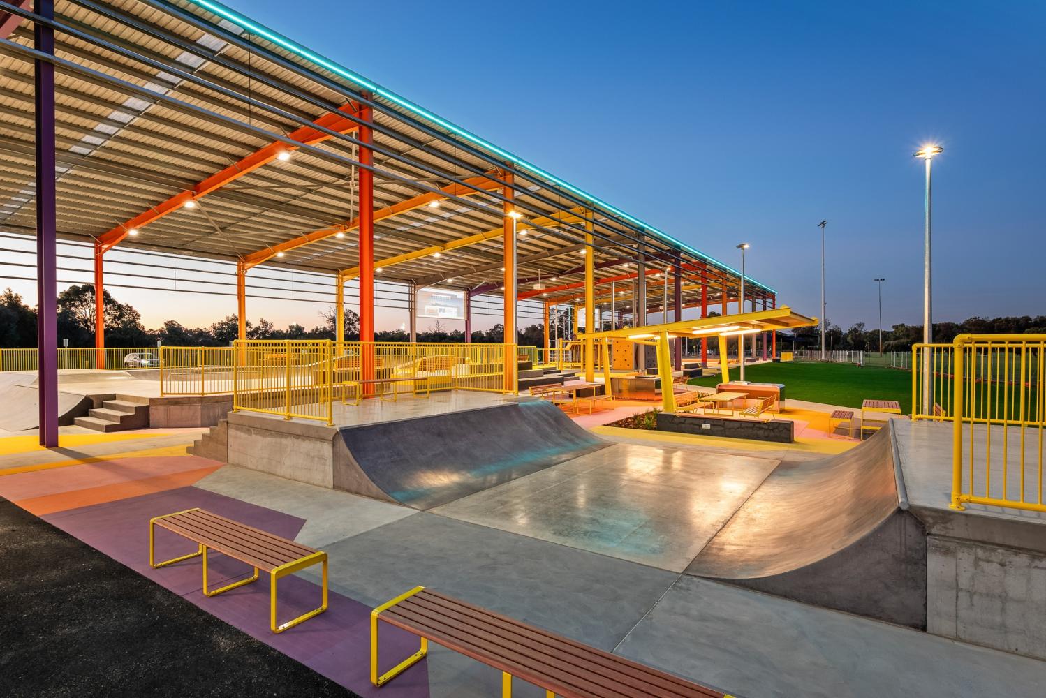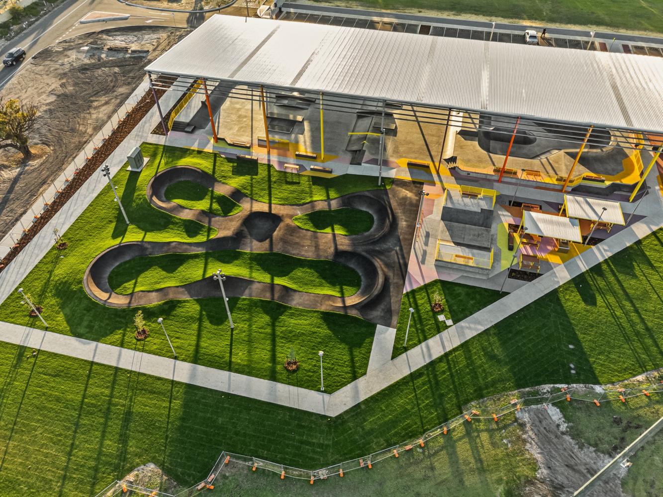 The Youth Entertainment Space, known as YES, boasts a split-level skating plaza with rails and banks, shallow skate bowl for all skill levels and a sealed pump track for BMX, mountain bikes or scooters. It also features an urban play area with hangout zone, social swings, platform seating, a rebound wall and multi-sports area.